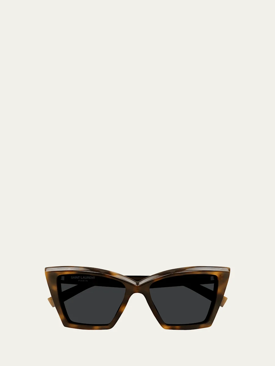Saint Laurent "SL 657" cateye sunglasses in acetate Lens/bridge/temple (in mm): 5416140 Solid lenses Saddle nose bridge Logo on temples Thin, tapered arms 100% UVA/UVB protection Made in Italy