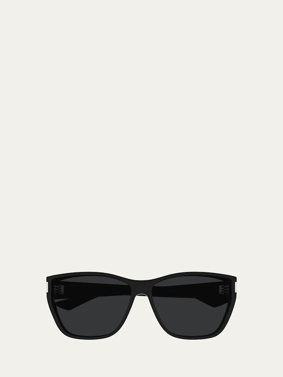 Saint Laurent cateye sunglasses in bioinjection plastic Eye/bridge/temple (in mm): 6314140 Solid lenses Saddle nose bridge Wide, tapered arms 100% UVA/UVB protection Made in Japan