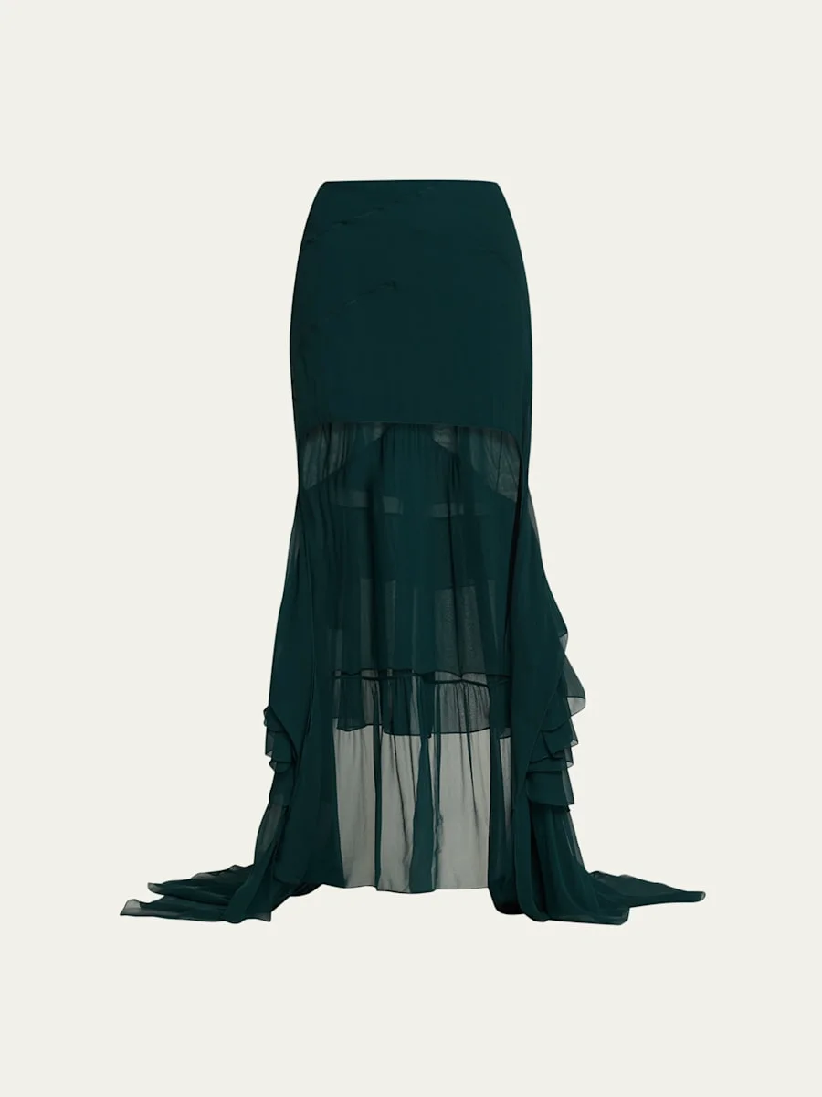Cascading Ruffle Silk Crepe High-Low Skirt