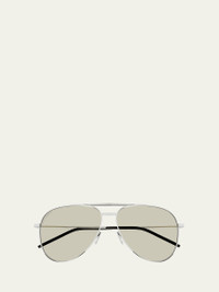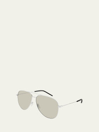 Saint Laurent aviator sunglasses in metal Eye/bridge/temple (in mm): 59-14-145 Solid lenses Adjustable nose pads Thin, tapered arms Capped earpieces Item Weight (Lbs.): 0.6 Metal Wipe clean 100% UVA/UVB protection Imported Proposition 65 warning for California residents This product contains perfluoroalkyl and polyfluoroalkyl substances (PFAS). For more information, please visit the manufacturer’s website. Online Inquiries: BGS21_D59VK| Store Inquiries: #5031030