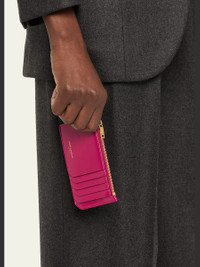 Saint Laurent "Fragments" card case in calfskin leather, detailed with logo lettering Zip top compartment Five card slots Approx. 2.9"H x 5.1"W x 0.3"D Made in Italy