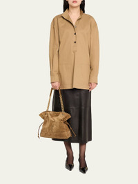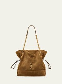 Saint Laurent shopper tote bag in suede, decorated with Carre Rive Gauche topstitching Features signature YSL logo Detachable chain and leather shoulder straps Open top with magnetic closure Side drawstrings Interior, removable ziptop pouch Approx. 13.8"H x 13.8"W x 3.9"D Made in Italy