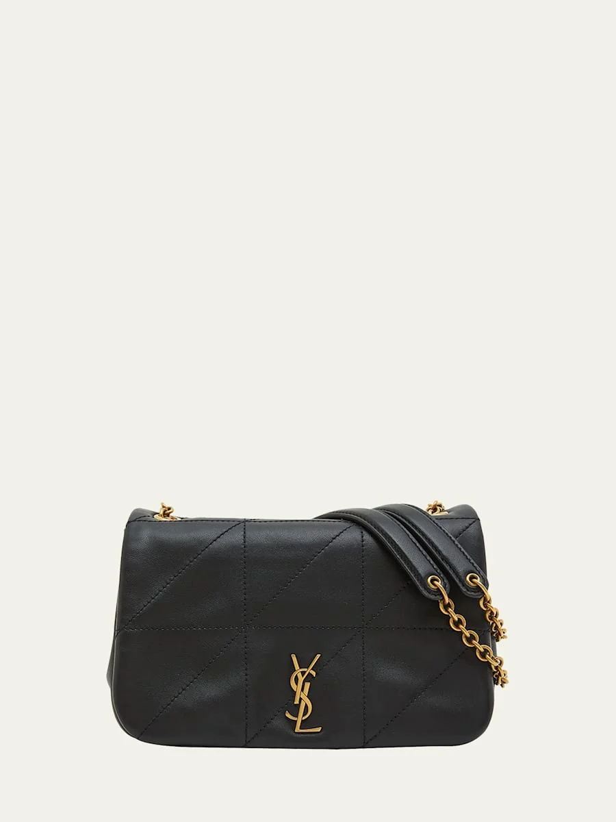 Saint Laurent "Jamie 4.3" shoulder bag in patchwork leather Features signature YSL logo lettering Sliding chain shoulder strap can be doubled, 11.4" drop Flap top with magnetic closure Interior, one slip pocket Bronze hardware Approx. 4.7"H x 7.8"W x 2.7"D Made in Italy Proposition 65 warning for California residents Online Inquiries: BGS21_V64AP| Store Inquiries: #4709186