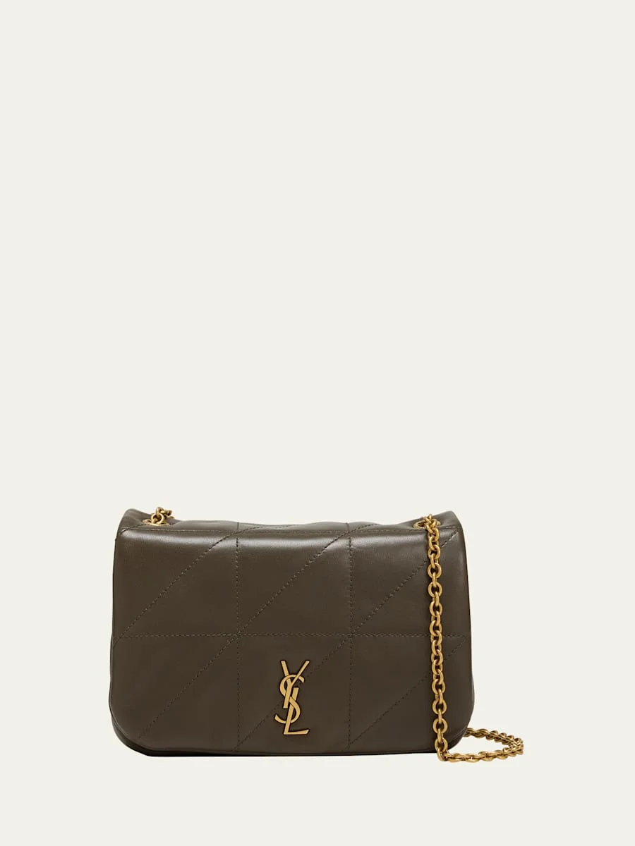Saint Laurent "Jamie 4.3" shoulder bag in patchwork leather Features signature YSL logo lettering Sliding chain shoulder strap can be doubled, 11.4" drop Flap top with magnetic closure Interior, one slip pocket Bronze hardware Approx. 4.7"H x 7.8"W x 2.7"D Made in Italy Proposition 65 warning for California residents Online Inquiries: BGS21_V64AP| Store Inquiries: #4709186