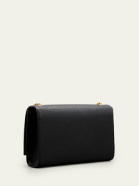 With logo monogram and swishy tassel detail, this pristine bag is expertly crafted in Italy from pebbled calfskin and suspended from a striking chain strap. Saint Laurent crossbody bag in calf leather. Chain shoulder strap, 19" drop. Can be worn over the shoulder or across the body. Flap top with YSL logo medallion tassel. Interior wall pocket and six card slots. Approx. 6"H x 9.5"W x 2.25"D. Item weight, 1 lb. "Kate" is made in Italy. Online Inquiries: BGS21_V4U55| Store Inquiries: #3647384
