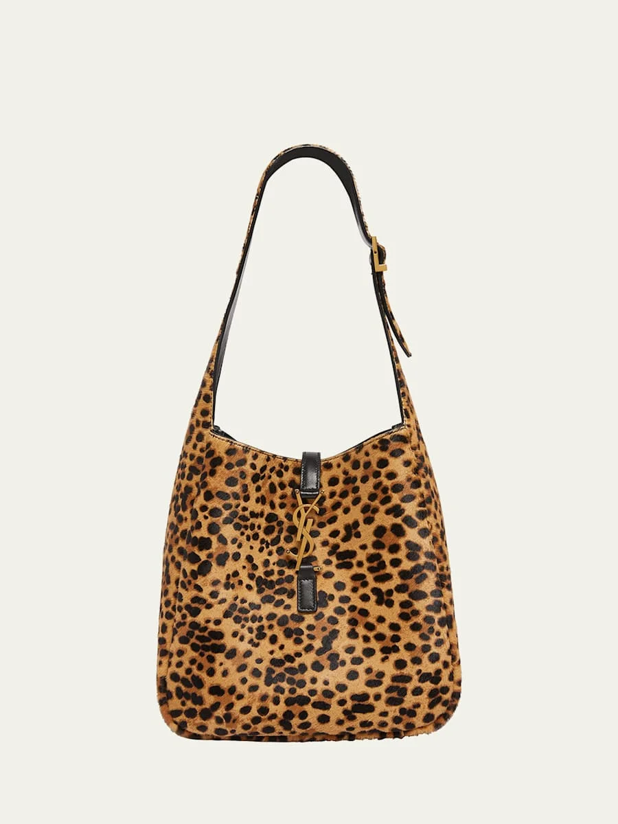 Le 5 A 7 Small YSL Hobo Bag in Leopard-Print Calf Hair