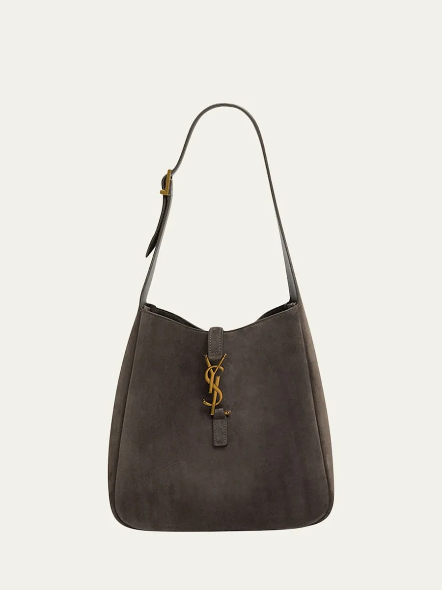 This spacious Saint Laurent "Le 5 A 7" shoulder bag is crafted in supple suede with rounded corners for a soft silhouette Adjustable shoulder strap, 8.3" drop Open top with YSL logo closure Interior, removable zip-top pouch Approx. 9"H x 8.7"W x 3.1"D Made in Italy Online Inquiries: BGS21_V6SAW| Store Inquiries: #5437551