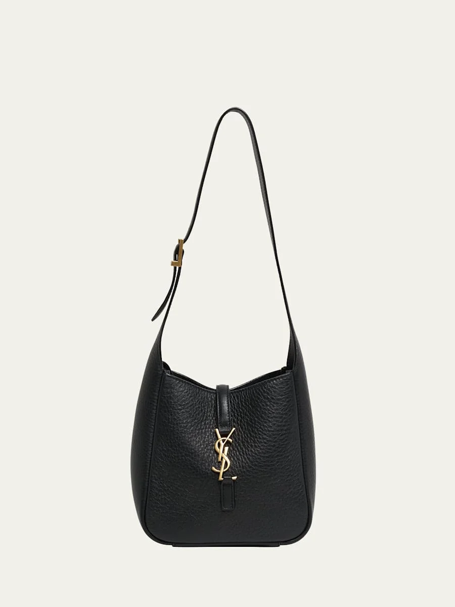 Saint Laurent "Le 5 A 7" hobo bag in grained deer leather Adjustable shoulder strap Center YSL strap closure Golden hardware Approx. 6.7"H x 14.2"W x 2.4"D Professional cleaning recommended Made in Italy Proposition 65 warning for California residents Online Inquiries: BGS21_V6AL6| Store Inquiries: #4856926