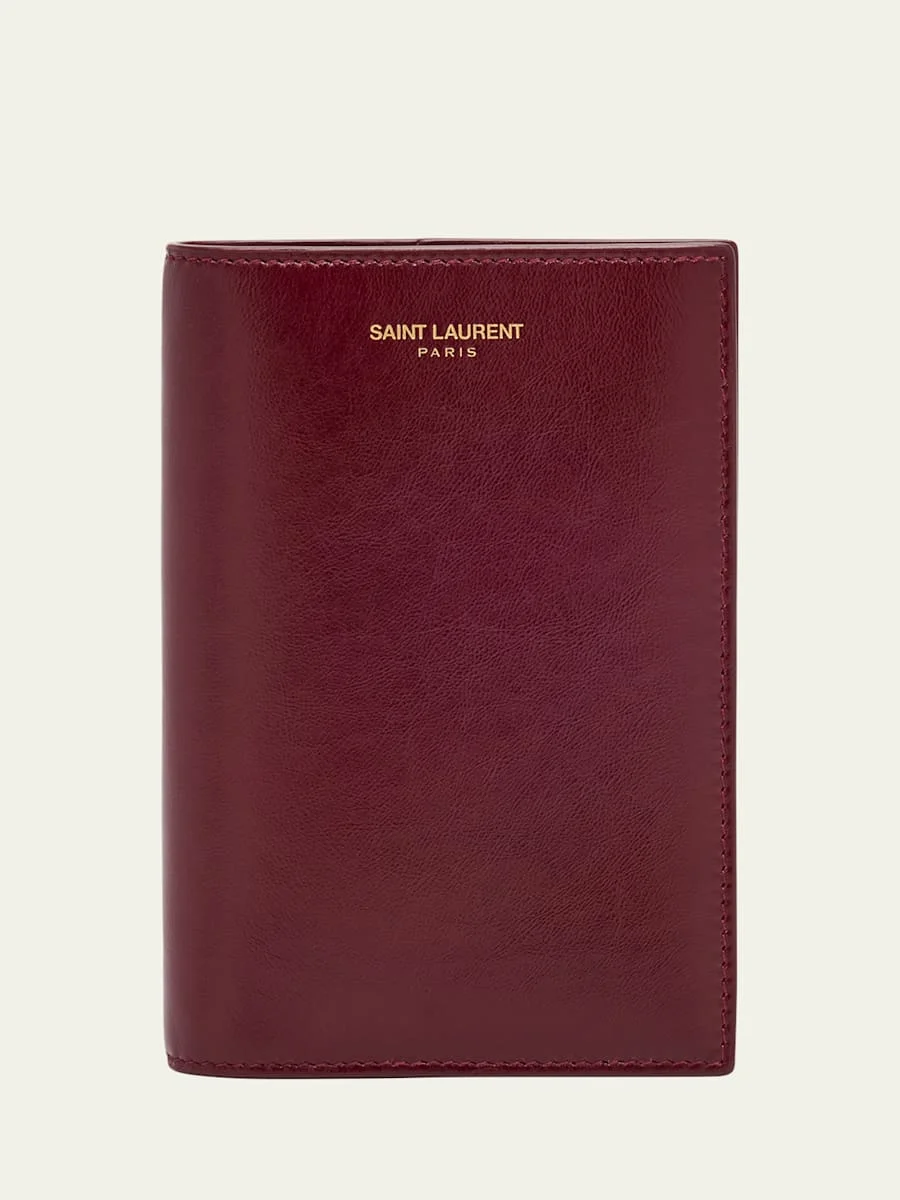 SAINT LAURENT PARIS PASSPORT CASE IN SHINY LEATHER