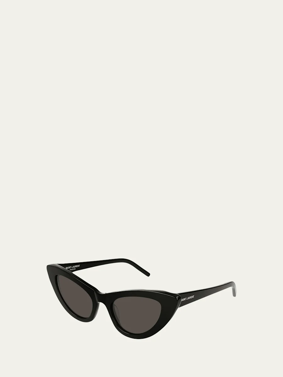 Saint Laurent "Lily" cat-eye sunglasses in acetate. Lens/bridge/temple (in mm): 52-21-145. Oval, monochromatic lenses. Logo detail at temples. Can be fitted with prescription lenses. 100% UVA/UVB protection. Made in Italy. Online Inquiries: BGS21_D3Z8K| Store Inquiries: #2455170