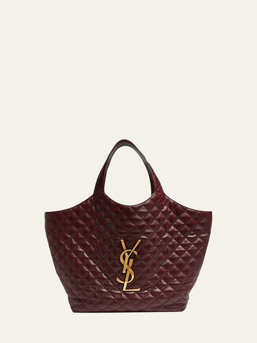 Saint Laurent quilted lambskin leather tote bag with YSL logo lettering Flat top handles Approx. 16.9"H x 22.8"W x 3.1"D Made in Italy Online Inquiries: BGS21_V6SNE| Store Inquiries: #4293534