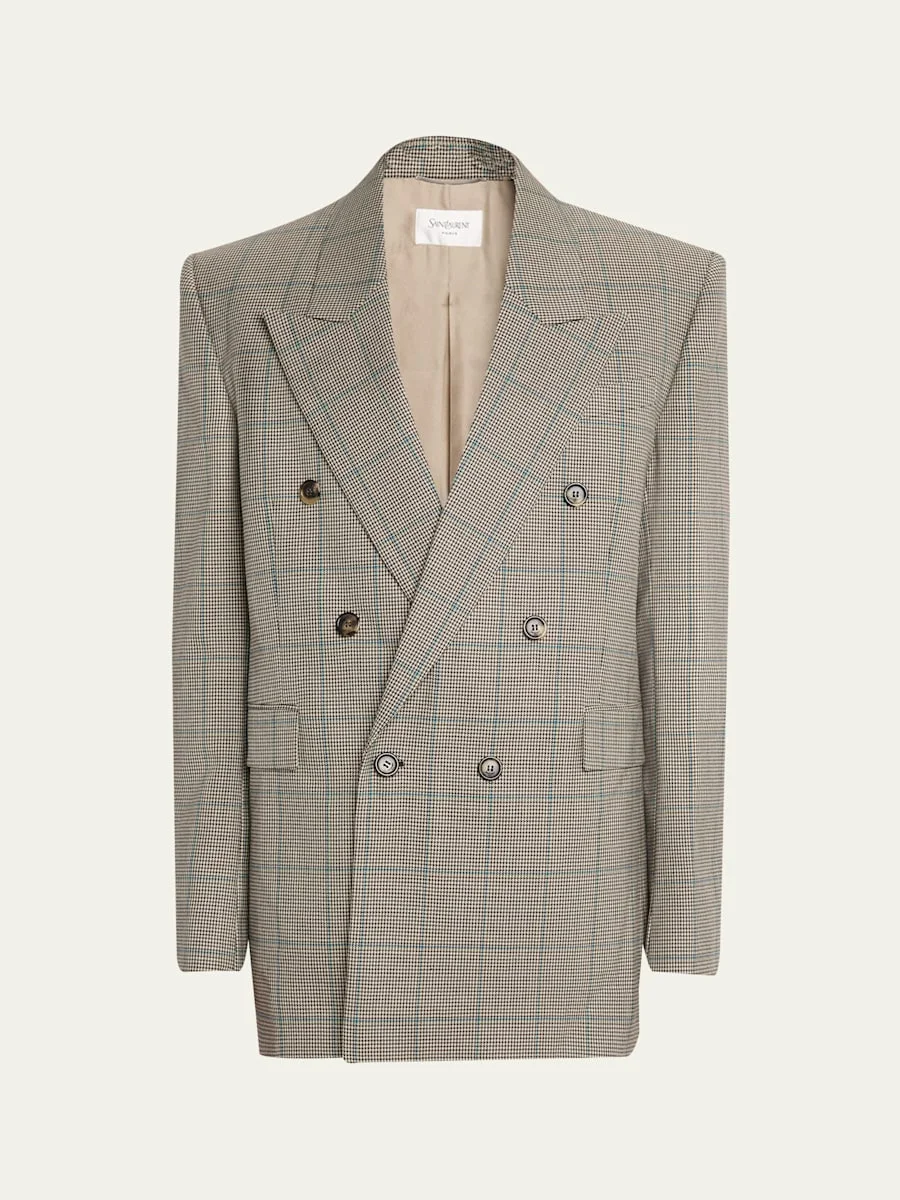 Men's Double-Breasted Check Wool Blazer