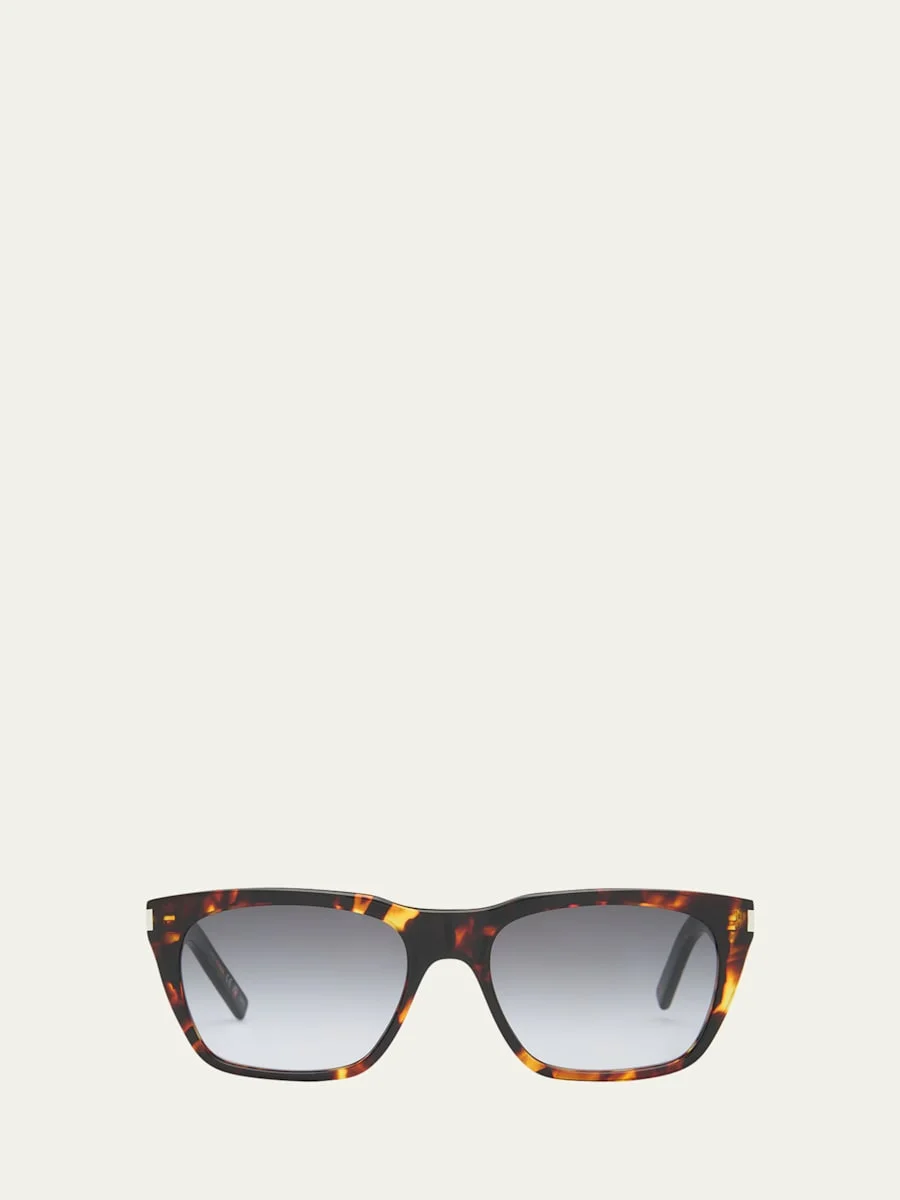 Saint Laurent "SL 5980" rectangle sunglasses with subtle logo lettering at the temples Eye/bridge/temple (in mm): 56-18-145 Gradient/solid-color lenses Full-rim frames Saddle nose bridge Tapered arms; curved temple tips Acetate 100% UVA/UVB protection Made in Italy Proposition 65 warning for California residents Online Inquiries: BGS21_NB43C| Store Inquiries: #4579924