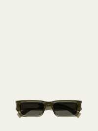 Saint Laurent "SL 660" rectangle sunglasses with acetate frames Lens/bridge/temple (in mm): 5418145 Solidcolor lenses Saddle nose bridge Temples with logo lettering Thick arms; curved temple tips Exposed metal corewire Acetate 100% UVA/UVB protection Made in Japan