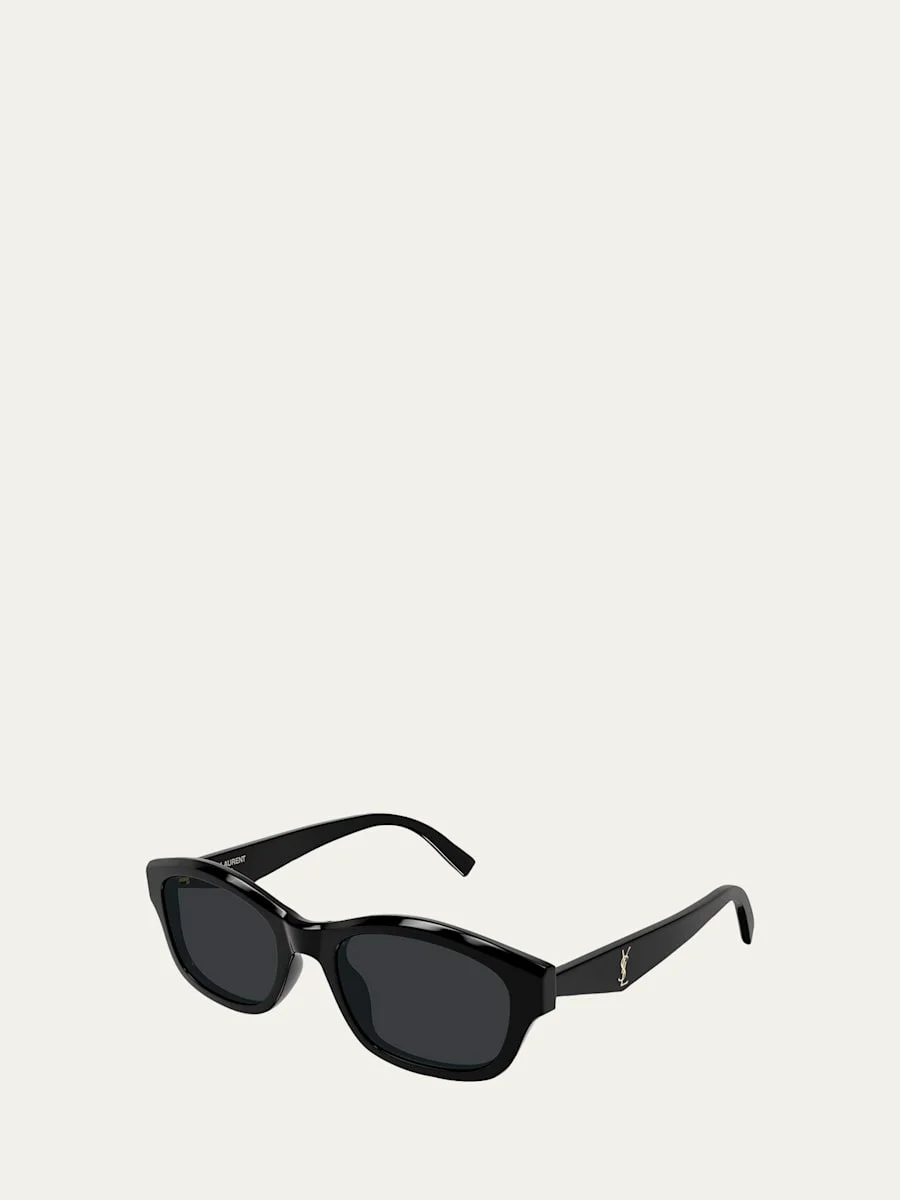 Saint Laurent "SL M172" rectangular sunglasses feature a bold, oversized silhouette enhanced with thick, architectural lines. Eye/bridge/temple (in mm): 5320145 Monochromatic lenses Saddle nose bridge Cassandre logo engraved on the temples Acetate 100% UVA/UVB protection Made in Japan
