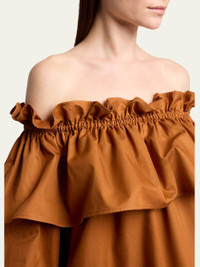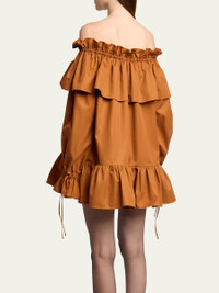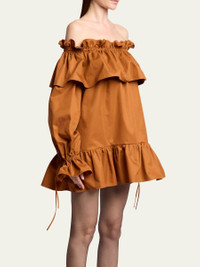 Off-the-shoulder ruffled cotton-twill mini dress Brick