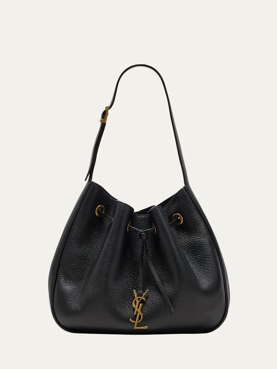 Saint Laurent "Paris VII" hobo bag in grained deer leather Adjustable shoulder strap Drawstring closure with YSL accent Golden hardware Approx. 11.8"H x 9.8"W x 1.2"D Professional cleaning recommended Made in Italy Proposition 65 warning for California residents Online Inquiries: BGS21_V6AEN| Store Inquiries: #4855303