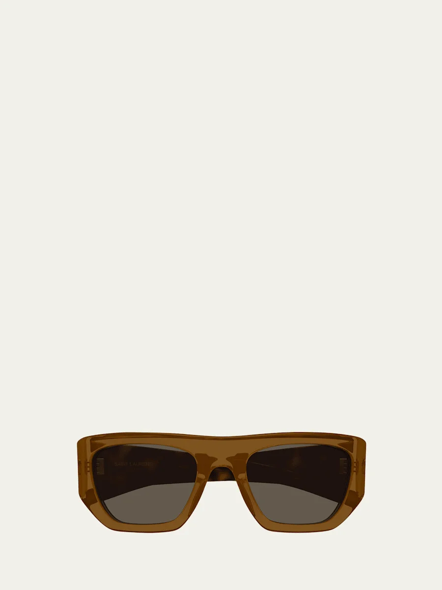 Saint Laurent rectangle sunglasses in acetate Lens/bridge/temple (in mm): 52-21-135 Solid-color lenses Logo on side temples Wide, tapered arms 100% UVA/UVB protection Made in Japan Proposition 65 warning for California residents Online Inquiries: BGS21_D5065| Store Inquiries: #4868259
