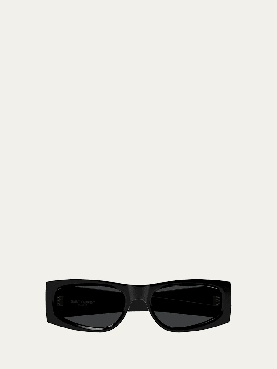 Saint Laurent rectangular sunglasses in acetate Eye/bridge/temple (in mm): 54-18-140 Solid-color nylon lenses Saddle nose bridge Wide, tapered arms Cassandre logo on the temples 100% UVA/UVB protection Made in Japan Proposition 65 warning for California residents Online Inquiries: BGS21_D5066| Store Inquiries: #4868260