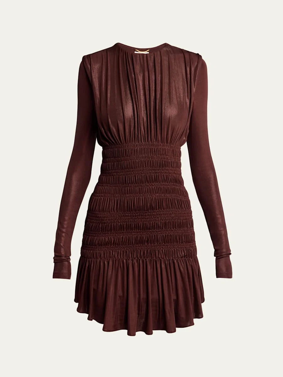 Ruched Long-Sleeve Mini Dress