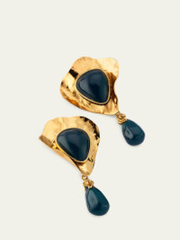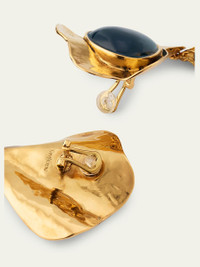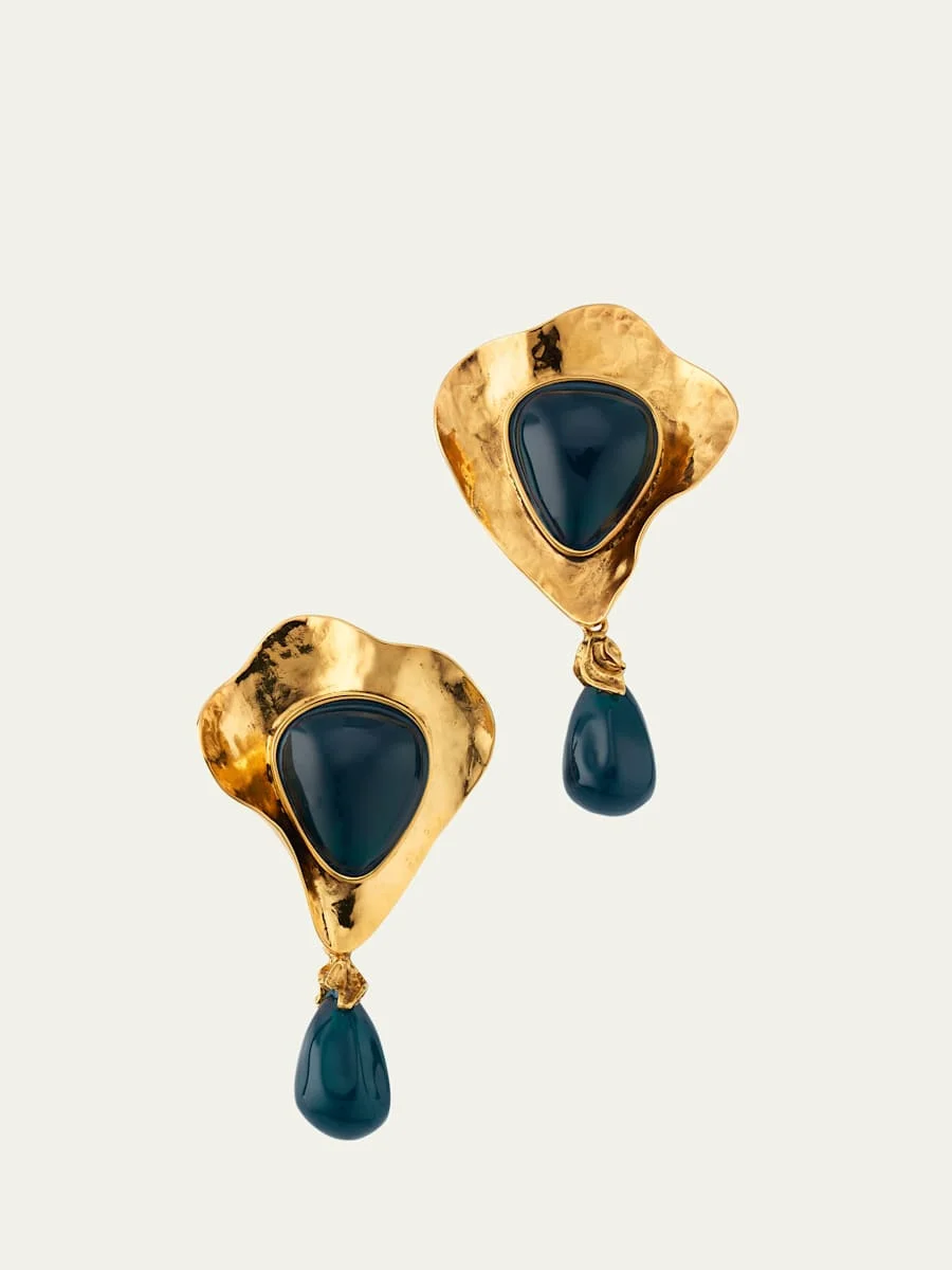 Saint Laurent plays with texture and mixed materials for these clipon drop earrings. Notice the hammered finish of the brass and the smooth, cabochoncut of the colorful resin. Hammered goldtone brass Resin cabochons and dangles Clipon backs Made in Italy