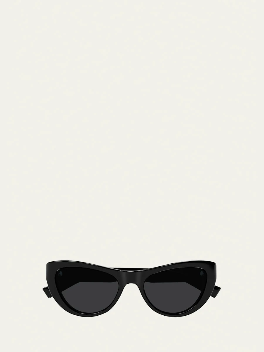 Saint Laurent "SL 676" cat-eye sunglasses in plastic Lens/bridge/temple (in mm): 53-19-145 Solid lenses Saddle nose bridge Logo on temples Thin, tapered arms 100% UVA/UVB protection Made in Italy Proposition 65 warning for California residents Online Inquiries: BGS21_D4UFW| Store Inquiries: #4704970