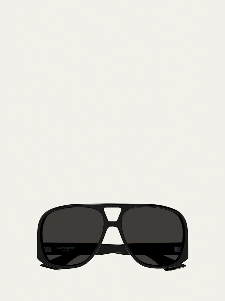 Saint Laurent "SL 652 Solace" aviator sunglasses in acetate Lens/bridge/temple (in mm): 59-14-135 Solid lenses Saddle nose bridge Logo on temples Thin, tapered arms 100% UVA/UVB protection Made in Japan Proposition 65 warning for California residents Online Inquiries: BGS21_D4UFU| Store Inquiries: #4704963