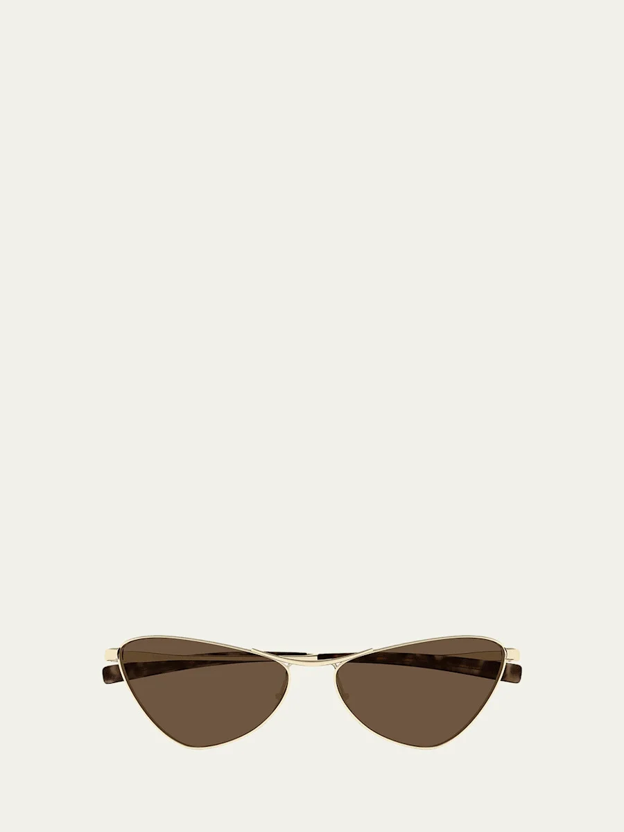 The "SL 830" sunglasses by Saint Laurent exude sophistication with their sleek titanium design and sharp angles. Lens/bridge/temple (in mm): 5614140 Cateye frames Adjustable nose pads Thin, tapered arms Capped acetate temple tips 100% UVA/UVB protection Made in Japan