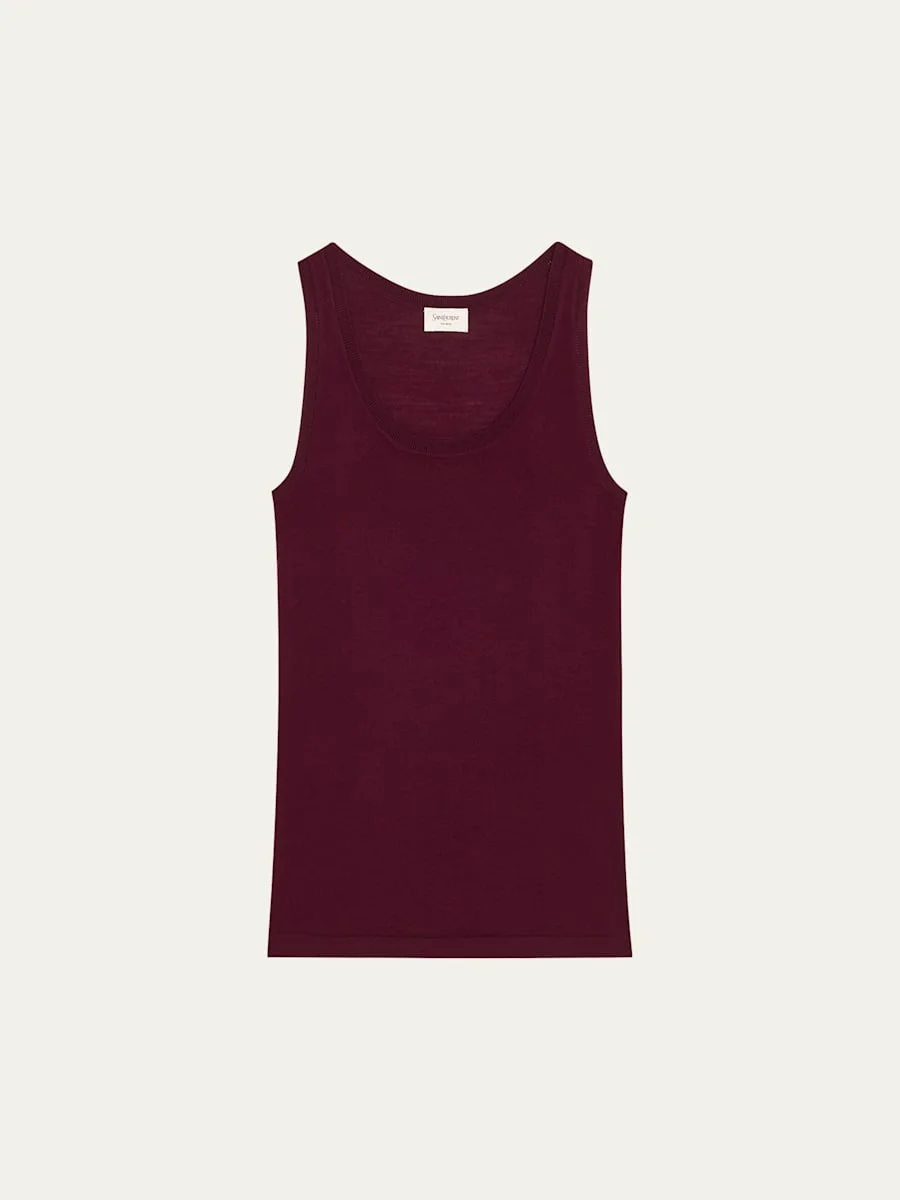 Saint Laurent tank top delivers understated sophisticatio Scoop neckline Sleeveless Slim fit Pullover style Silk Made in France Proposition 65 warning for California residents Online Inquiries: BGS21_B9Y95| Store Inquiries: #4999631