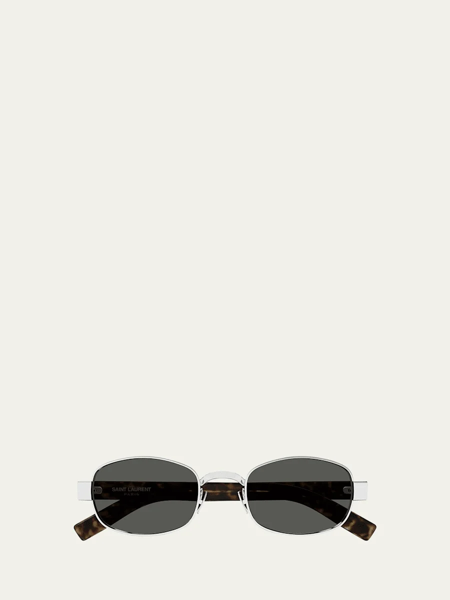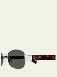 Saint Laurent round sunglasses crafted from twotone metal Eye/bridge/temple (in mm): 5322145 Adjustable nose bridge Engraved logo on the temples Wide, tapered arms 100% UVA/UVB protection Made in Italy
