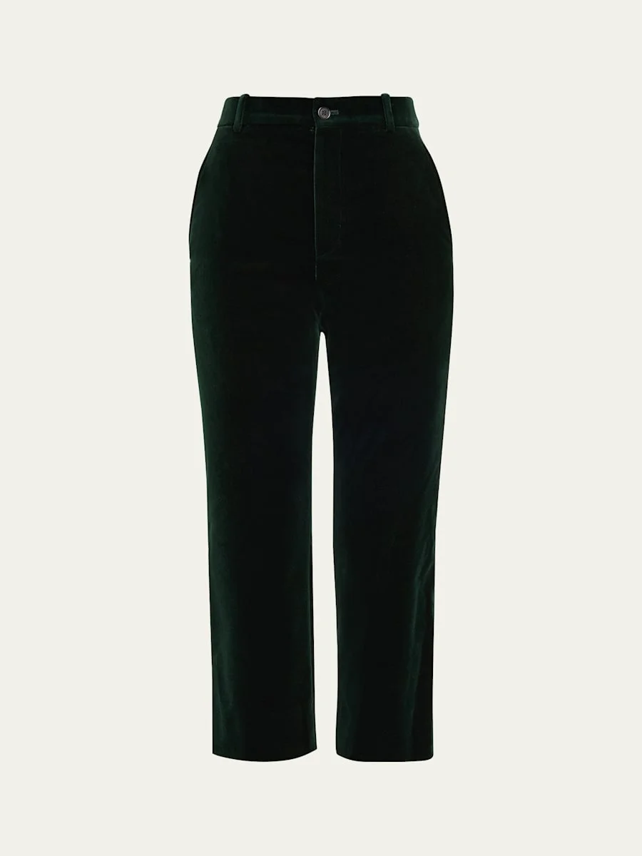 Cropped cotton-velvet slim-leg pants Green