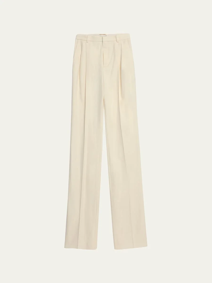 Pleated wool straight-leg pants
