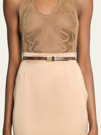 Bottega Veneta skinny belt in snakeskin with golden hardware Approx. 0.5"W Cut to size Adjustable fit YSL buckle closure Professional cleaning recommended Made in Italy This item cannot be sold or shipped to California. Online Inquiries: BGS21_D507D| Store Inquiries: #4869329