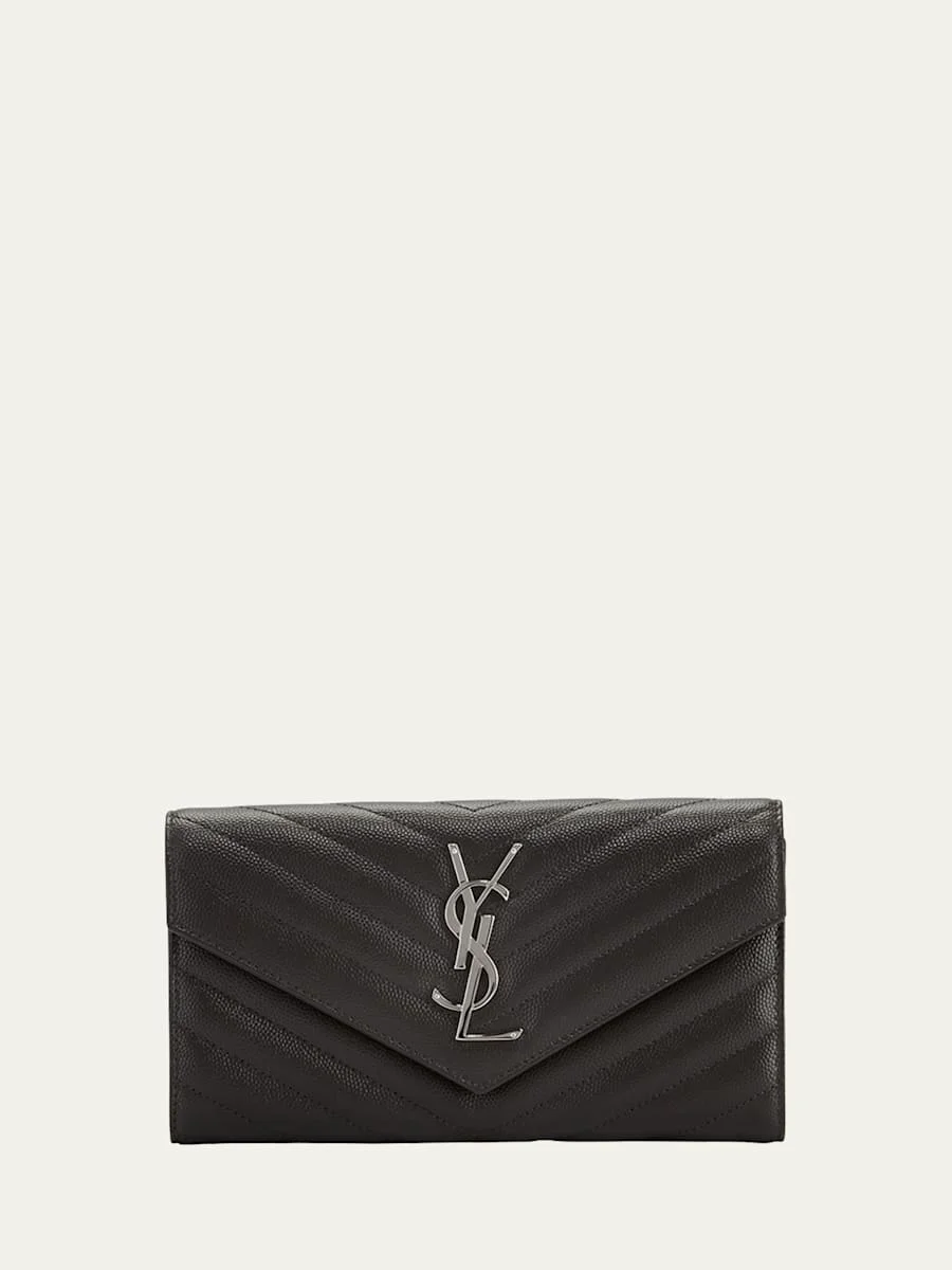 YSL Monogram Large Flap Wallet in Grained Leather