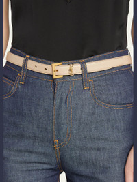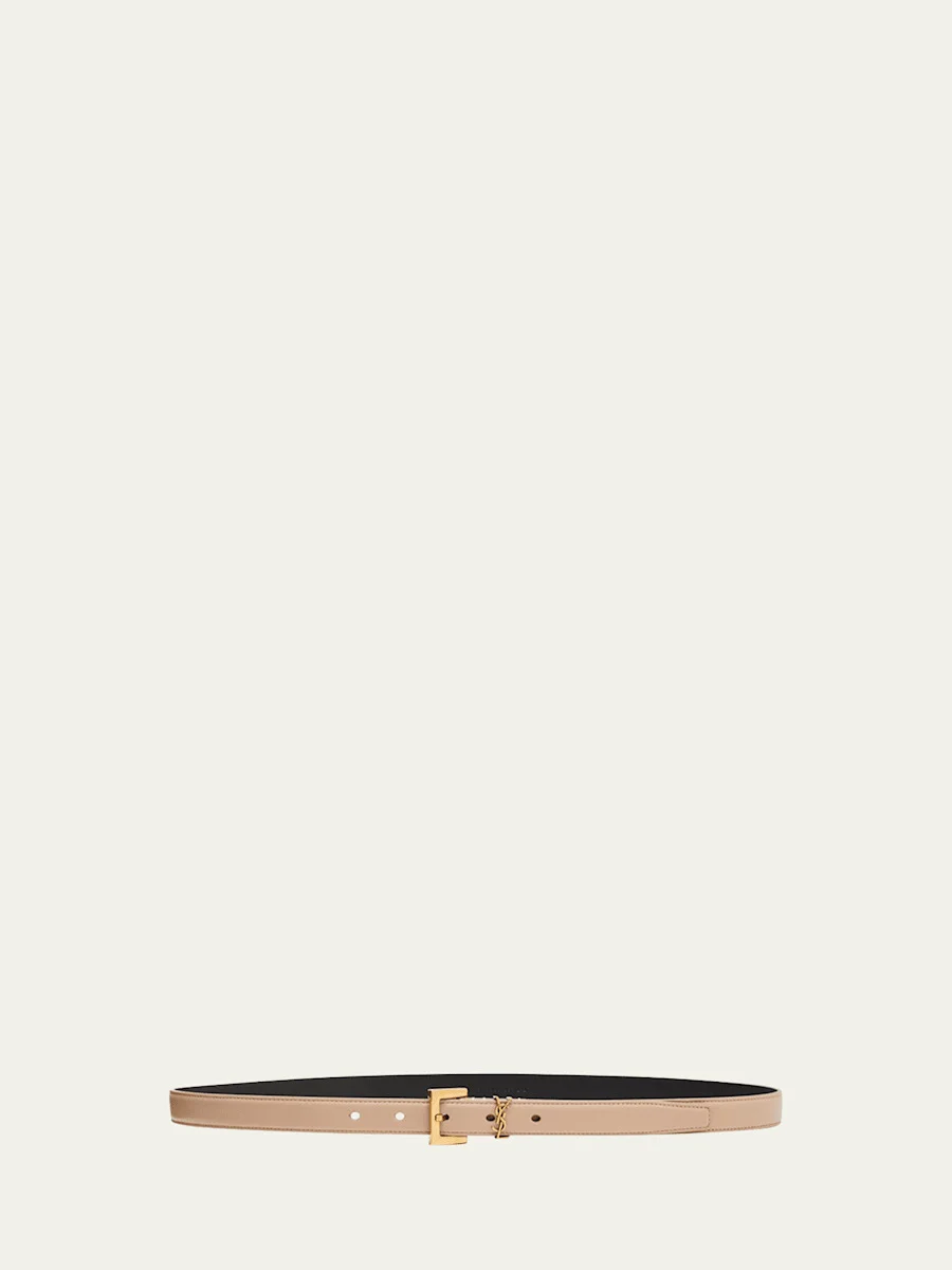 SAINT LAURENT's belt is made from supple yet structured leather that'll age beautifully. It's detailed with silver 'YSL' hardware to match the buckle. The narrow shape is perfect for threading through loops of jeans or tailored pants. It's been made in Italy from soft leather and cut in a slim width that'll work well with skinny jeans. Saint Laurent leather belt. Metal YSL monogram detail. Approx. 0.78"W (2cm). Golden hardware. Made in Italy. Online Inquiries: BGS21_D418Z| Store Inquiries: #3185913