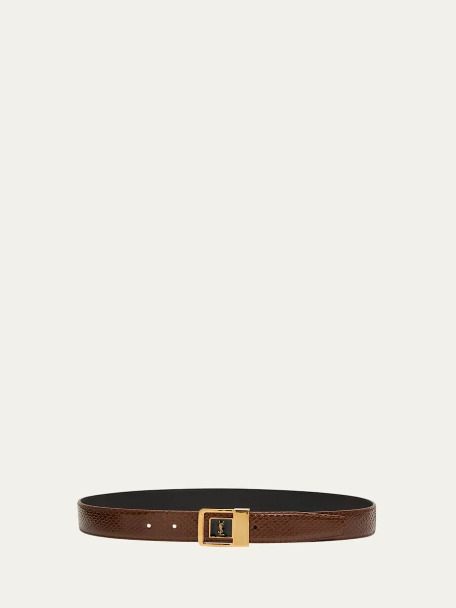 Saint Laurent belt in python snakeskin with brass hardware Cut to size YSL buckle Adjustable fit Tapered end Made in Italy