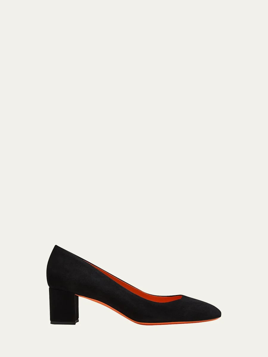 Santoni "Flight" classic suede pumps 2.00 in / 50 mm covered block heel Almond toe Slip-on style Leather outsole Lining: Leather Made in Italy Online Inquiries: BGS21_X5SAZ| Store Inquiries: #4330903