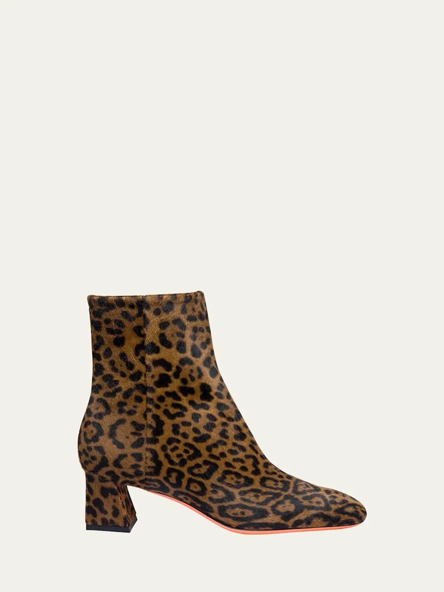 Santoni "Marta" leopard-print booties in calf hair 2.00 in / 50mm block heel Almond toe Leather lining Leather outsole Made in Italy Online Inquiries: BGS21_X6YC4| Store Inquiries: #5052387