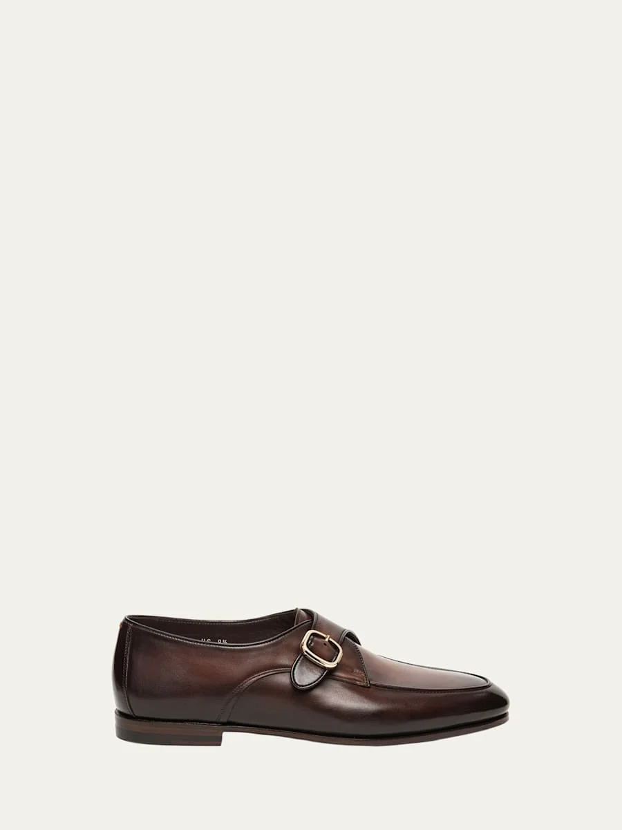 Men's Carlo Burnished Leather Single-Monk Strap Loafers