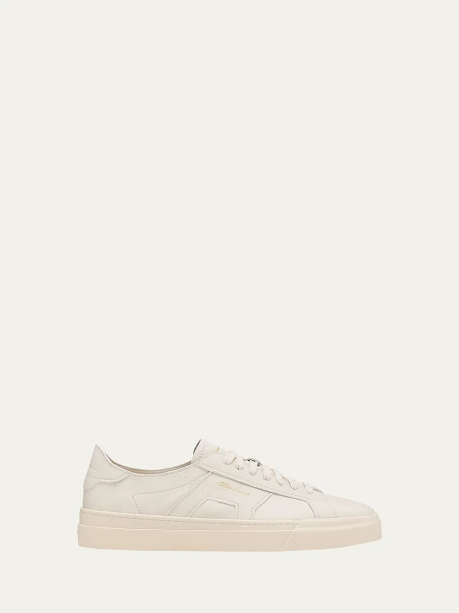 Santoni "DBS" low-top sneakers in grained calf leather Features a double-buckle-inspired leather accent on the sides Flat heel Round toe Lace-up vamp Logo lettering on the tongue and side Embossed backstay logo Raised heel logo Rubber outsole Lining: Leather Made in Italy Online Inquiries: BGS21_NBQRY| Store Inquiries: #4694183