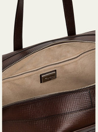 Santoni weekender duffel bag in grained calf leather with silver-tone hardware and suede lining Flat top handles Detachable shoulder strap Two-way top zipper closure Internal zipper pocket Approx. 47.2"W x 0.6"D Professional cleaning recommended Made in Italy Online Inquiries: BGS21_NC5M4| Store Inquiries: #4812123