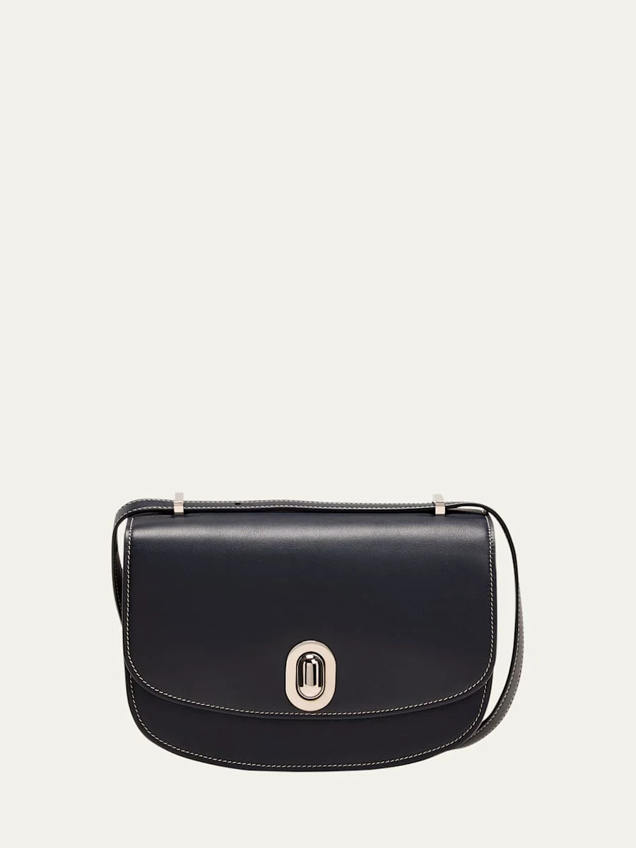 Savette "The Tondo 22" crossbody bag in smooth calf leather Removable shoulder strap Flap top with turn-lock closure Approx. 6.5"H x 9.5"W x 3"D Made in Italy Online Inquiries: BGS21_V5J19| Store Inquiries: #4348019