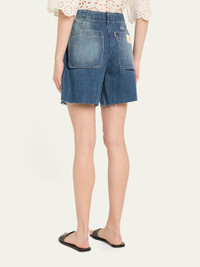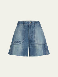 Sea "Spencer" denim shorts finished with a raw hem Approx. 4.5" inseam High rise Front and back patch pockets Flared fit Button/zip fly; belt loops Cotton Dry clean Imported Online Inquiries: BGS21_T6TVV| Store Inquiries: #5034373