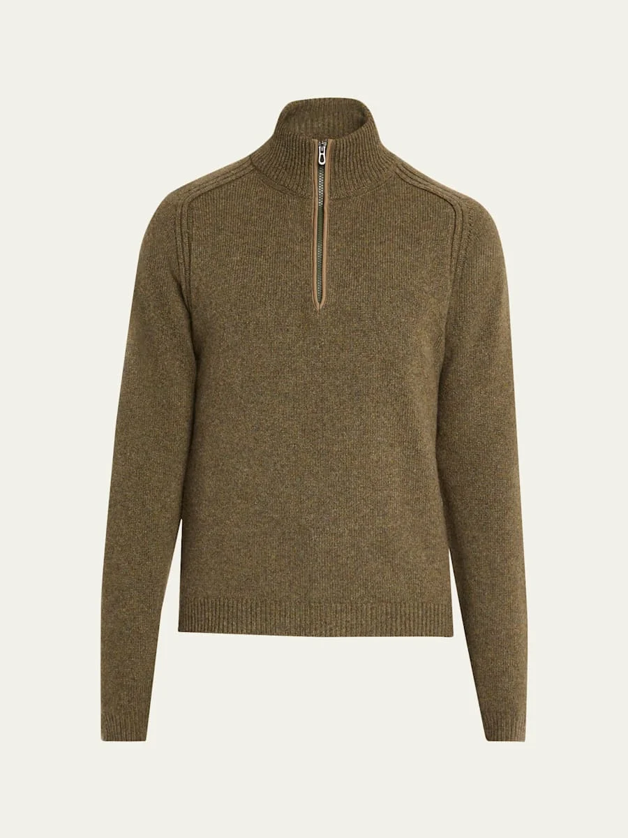 Twisted coarsehair cashmere represents refined luxury and timeless style in this premium knit sweater by Sease 5 GG Ribbed mock neck Halfzip neckline Ribbed cuffs and hem Pullover style Cashmere Made in Italy