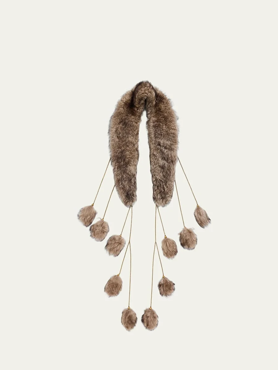 Crafted from natural lamb shearling (Italy), the "Treasure Trails" scarf from See by Chloe is adorned with pompoms set on golden brass chains for a luxurious silhouette. May be styled in multiple ways Dry clean Made in Italy