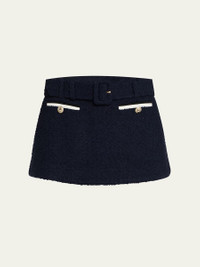 Self-Portrait skort cut from boucle fabric with golden button detailing High rise Removable belt Hem falls above the knee A-line silhouette Back zip closure Polyester/acrylic/wool Dry clean Imported Online Inquiries: BGS21_T6TTT| Store Inquiries: #5034256