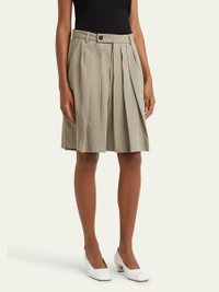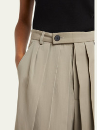 SETCHU "Hakama" shorts with allover pleats Approx. 6.7" inseam High rise Wide legs Knee length Side slip pockets; back pockets Button/zip fly; belt loops Virgin wool/cotton Unlined Made in Italy Online Inquiries: BGS21_B9KNT| Store Inquiries: #4894452