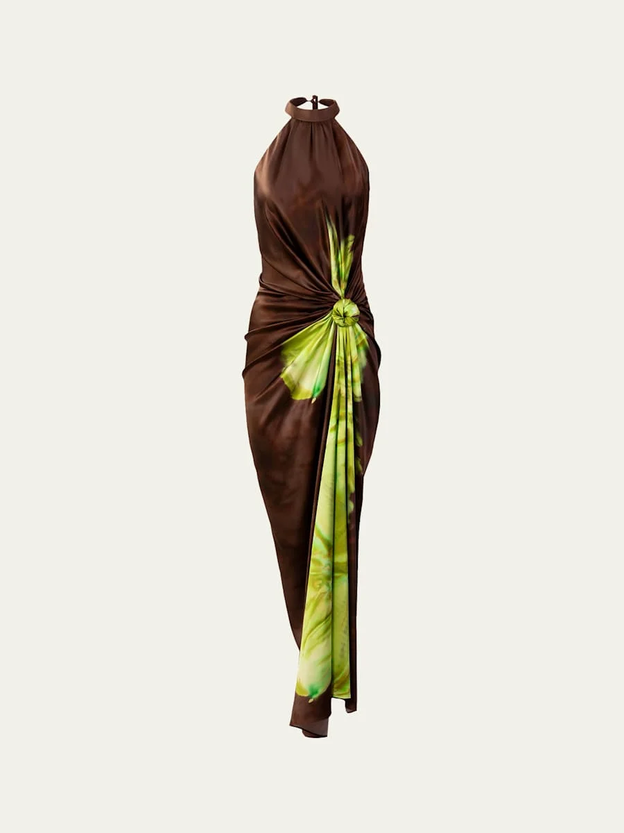 Tizziana Knotted Silk Halter Midi Dress