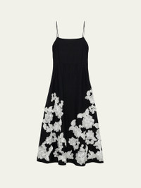 The "Annabella" dress by SIMKHAI is embroidered with contrasting florals along the hem Square neckline Sleeveless Hem falls below the knee Aline silhouette Slipover style Linen/viscose/cotton Imported