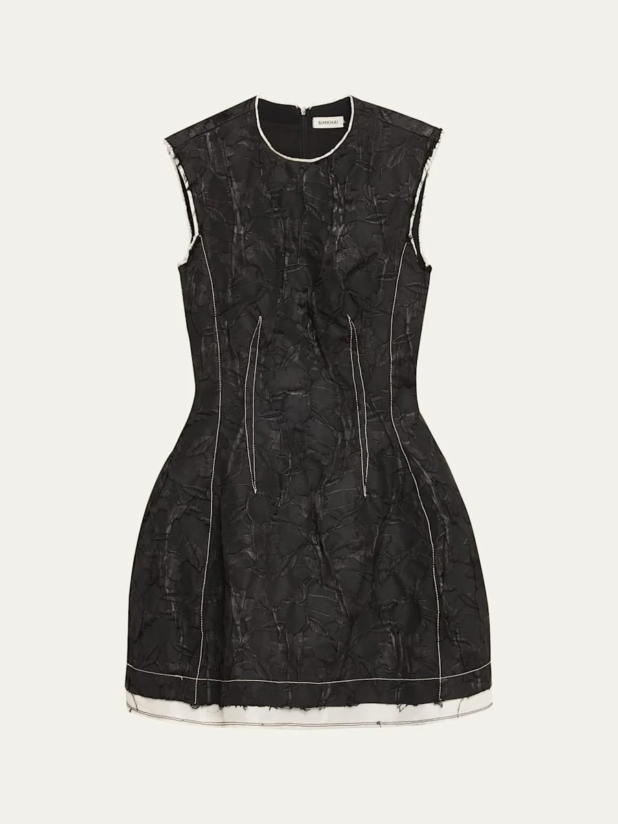 Crafted in waxed floral jacquard, the "Audrina" mini dress by SIMKHAI features a structured silhouette and exposed, contrast stitching. Crew neckline Sleeveless A-line silhouette Hem falls above the knee Center back zip Polyester/cotton/nylon/polyamide Imported Online Inquiries: BGS21_T6Z1W| Store Inquiries: #5072787